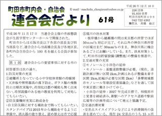 「連合会だより」61号が発行されました。今回の内容は、市政懇談会にての防災や防犯のことや、小山・小山ケ丘地区の交流事業の紹介などの記事です。詳細は左の画面をクリックしてください。